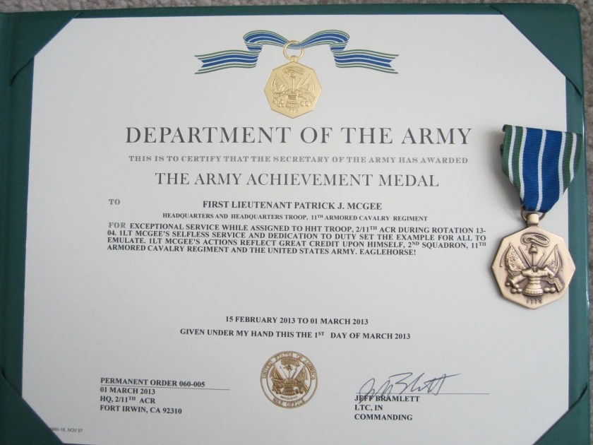 Patrick McGee was an Army officer who served as a tank commander and platoon leader with the 11th Armored Cavalry Regiment. He helped lead combat training missions that prepared units for deployments to Iraq and Afghanistan. After being promoted to first lieutenant, Patrick was put in charge of more than 100 soldiers and hundreds of tactical vehicles, including 15 Abrams Tanks. He was rated in the top 10 percent of his peers by the battalion commander and was awarded the Army Achievement Medal and the Army Commendation Medal. He was promoted to Captain in the Army Reserves. Above is a video showing some of his work at a tank gunnery in the Mojave Desert. Below that are some photos that can be enlarged by clicking on them.